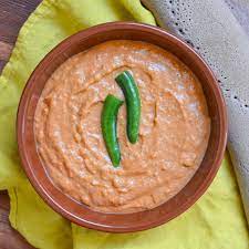 Le shiro est un ragoût fait à partir de farine de pois chiche. Agrémenté d’oignons, d’ail et de diverses épices. Servi sur de l’injera,à la farine de teff
