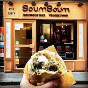 Soumsoum est un concept de street food israélo-méditerranéen. Accessible à tous, Soumsoum s’inscrit dans une cuisine veggie friendly, tendance, basée sur l’utilisation de produits frais, sains, travaillés tous les jours. SoumSoum propose plusieurs spécialités à base ou agrémentées de houmous en revisitant la recette traditionnelle de cette préparation culinaire à base de purée de pois chiches, ail, jus de citron, huile d’olive et crème de sésame.