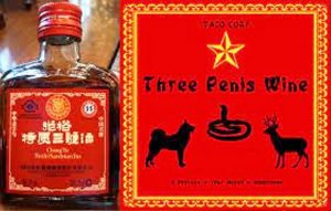 La boisson Tezhi Sanbian Jiu signifie « liqueur aux trois organes sexuels masculins » en français.