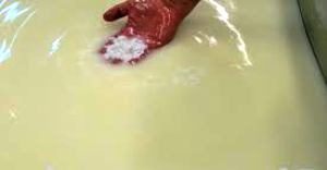 La préparation du Kopanisti Mykonou comprend des cultures artisanales, issues de la pratique de l’utilisation de certains des lots précédents de fromage produit.