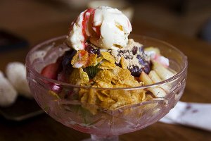 Cette glace est l’un des desserts les plus populaires de Malaisie qui est en fait avec un monticule de glace finement grattée et sucrée avec du sirop aromatisé sucré comme le sirop de sucre de palme ou le sirop de rose. La glace pilée est ensuite recouverte d’une généreuse portion de gelée, de graines de palme, de haricots rouges, d’arachides et de maïs sucré.