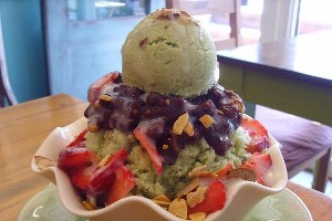 Le bingsu est l’un des snacks favoris en Corée en été. On raconte que déjà à l’époque de la dynastie Joseon (1392 – 1910), on dégustait de la pâte de haricot rouge sucrée rafraîchie avec de la glace finement pilée. La recette s’est transmise jusqu’à maintenant avec de légères améliorations.