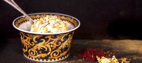 La Black Diamond est un mélange d’ingrédients à prix élevé avec de l’or comestible 23 carats broyé sur le dessus, de la crème glacée à la vanille Madagascar, ainsi que d’un safran iranien cher et décoré de tranches de truffe italienne noire.
