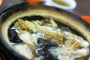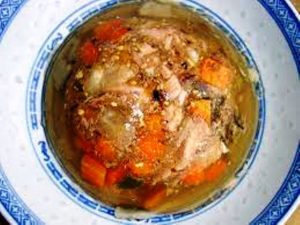 Ce nom signifie littéralement « viande-os-thé ». Il s’agit de travers de porc dans un bouillon d’herbes et d’épices (anis étoilé, cannelle, clous de girofle, dang gui, graines de fenouil et ail.