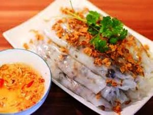 Le bánh cuốn (« galette à la vapeur enroulée » en vietnamien) est un plat vietnamien.