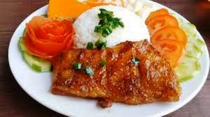 Les ingrédients nécessaires pour réaliser le cơm tấm, ou cơm tấm sườn bì chả, sont : grains de riz long parfumé pour la poudre de riz grillé, couenne de porc séchée en filament, viande de porc (échine ou palette), sauce de poisson en saumure, sucre cassonade, gousses d’ail pressé en purée, poivre, vinaigre……