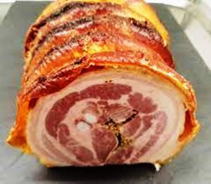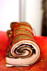 Il s’agit d’un morceau de porc gras braisé, replié sur lui-même de manière à former un cylindre, épicé et aromatisé au clou de girofle.