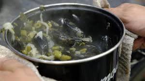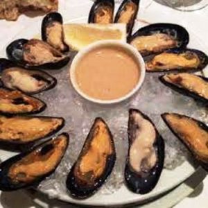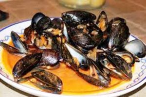 Liste des ingrédients utilisés dans cette recette sont : moules crues, jus de citron, jus de cédrat, moutarde, vinaigre, poivre noir…