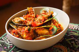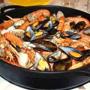 Ce plat semblable à une paella se compose de crevettes, de palourdes, de crabe, de homard, de moules et de coques. Les palourdes sont cuites dans un bouillon récupéré pour la préparation du riz, qui mijote ensuite dans un ragoût fait d’ail, de tomate, d’oignon et d’huile d’olive.