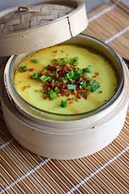 Les œufs à la vapeur chinois ou les œufs d’eau sont des œufs battus avec de l’eau ou avec un bouillon, cuits à la vapeur pendant dix minutes. Ils sont mangés chauds ou froids, la texture doit être tremblante et onctueuse.