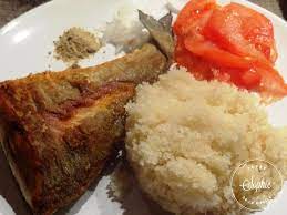 Les ingrédients utilisés pour la recette sont : attiéké sec ou congelé, grosse tomate fraîche, oignon, concombre, citron, sel, sauce oignon, sauce piment, cuisses de poulet grillé, huile, eau…