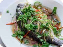 l s’agit d’une recette chinoise, plus exactement une recette du Sud-Est de la Chine : une recette cantonaise qui se base sur la cuisson vapeur d’un poisson blanc ultra frais. Recouvert de ciboule et de gingembre frais, et nappé de sauce soja. Une recette que l’on mange souvent au nouvel an chinois puisqu’il est un des sept éléments clé du repas : il représente la prospérité.