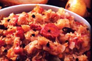 Garniture : pomme par convive, gros chou rouge, citron, sucre, graisse d’oie, carvi, poivre, sucre…