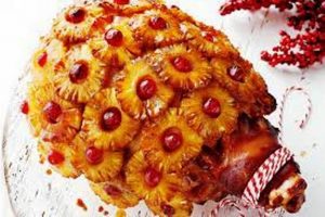 On ne coupe pas à la traditionnelle dinde de Noël aux États-Unis non plus ! S’il y a un plat typique que l’on prépare aussi pour le repas du réveillon de Noël aux États-Unis, c’est le jambon à l’ananas. Et on reçoit les invités avec un petit verre d’Egg Nog, un breuvage parfumé au rhum. Le jambon et l’ananas forment une excellente combinaison sucrée-salée, surtout lorsqu’ils sont sortis du gril et arrosés d’une sauce savoureuse. Le ham with pineapple est une façon classique de préparer le jambon. Un mélange de cassonade, de jus d’ananas devient un glaçage facile et simple. Nous préférons deux méthodes pour préparer le jambon ; sur la rôtissoire ou dans la mijoteuse. Les ingrédients utilisés pour réaliser le ham with pineapple sont : jambon de Noel, ananas, oranges, feuilles de laurier, bouquet garni, bouillon cube, sucre…