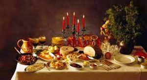 Il faut d’abord préparer 12 plats végétariens (salades, choux, betteraves, beignets …) parce que le jeûne n’est pas terminé. Ce n’est qu’après la levée de la première étoile que l’on peut manger de la viande, des friandises…