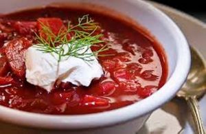 Les ingrédients utilisés pour réaliser le bortsch ukrainien sont : poitrine de bœuf, plat de côte de porc, chou blanc, betterave, carotte, oignon, tomates, pommes de terre moyennes, sucre, de farine, concentré de tomate, vinaigre balsamique, huile d’olive, gousses d’ail, feuilles de laurier, persil, aneth, crème fraîche, sel, graines de poivre de Jamaïque…