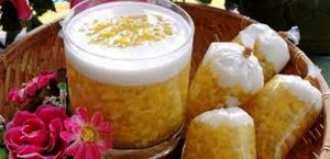 Au Vietnam, les desserts à proprement parler sont plutôt récents. Traditionnellement, on favorise plutôt les fruits ou les boissons épaisses au lait de coco ou au tapioca. Avec le temps, des préparations comme celle présentée aujourd’hui ont fait leur apparition. Plus proche du porridge que de la boisson légère, il existe différents types de chè, préparés au tapioca, à base de riz gluant, accompagnés de fruits ou comme c’est le cas ici de maïs. Ce dernier ingrédient est justement la preuve de la modernité de ce dessert puisqu’il a été implanté au Vietnam dans les années 1970 et a fini par devenir un ingrédient emblématique du sud du pays.
