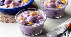 C’est un dessert ou une collation populaire aux Philippines. C’est aussi coloré et amusant, bien que cela semble un peu étrange. Les personnes qui mangent pour la première fois se demandent souvent ce que tous ces morceaux colorés flottent dedans. Ce sont des patates douces, des plantains, du jacquier et des boulettes de riz gluant. Il est doux et fruité, et les perles de tapioca lui donnent un aspect pétillant unique. C’est en fait assez nutritif aussi, donc ça peut servir de petit-déjeuner en un clin d’œil.