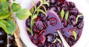 Les ingrédients utilisés pour réaliser la recette sont : cerises, citron, orange, sucre, vin rouge corsé, kirsch, Maïzena, bâtons de cannelle, étoiles de badiane, graines de cardamome, gousse de vanille, branche de verveine fraîche…