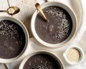 La soupe de sésame noir est un dessert très répandu en Chine ; il est généralement servi chaud.