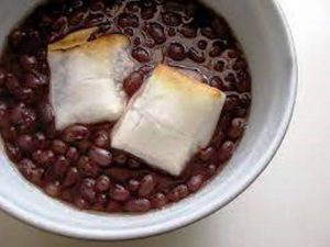 Les ingrédients utilisés pour réaliser la recette sont : haricots rouges adzuki (ou azuki), eau, sucre, mochis à griller…