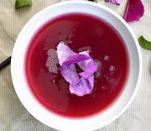 Cette soupe rose soyeuse est lisse, crémeuse et sucrée. Il faut 5 minutes pour préparer et mélanger des ingrédients contrastés pour une saveur délicieuse.