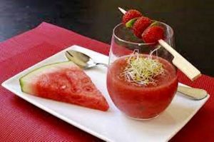 Fruité et rafraichissant, ce gaspacho de pastèque et framboises est idéal servi en dessert, pour finir un repas d’été sur une touche de légèreté. Vous n’avez besoin que de quelques ingrédients pour vous régaler : des fruits, du sucre, du jus de citron et de la menthe.