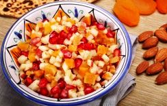 Il se présente sous forme de salade de fruits composée de pommes en dés, dattes, abricots secs et noix hachés.