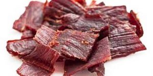 Le jerky est une variété de viande séchée et salée de bœuf, découpée en fines lanières. Le mot vient d’un mot quechua (charqui) signifiant « viande séchée et salée ».