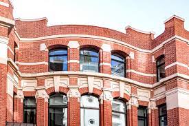 Aux numéros 78 et 80 de la rue Rébeval, se dresse la silhouette colorée d’une ancienne usine Meccano, entreprise britannique spécialiste des jeux de construction. Intrigante façade de brique et pierre de taille tout en courbes et contre-courbes, les raccords aux bâtiments mitoyens ont été érigés en forme de tourelles crénelées. L’immeuble industriel s’élève sur cinq niveaux en cour d’ilot. Il abrite de nos jours l’Ecole des ingénieurs de la Ville de Paris. Construit entre 1921 et 1922, il est l’œuvre de l’architecte d’origine belge Arthur Vye-Papmintep à qui l’on doit également lotissement de la villa Pasteur à Neuilly-sur-Seine. Insolite dans le paysage parisien, il est inspiré par le romantisme pittoresque post-Art Nouveau dont se retrouvent de nombreux exemple à Bruxelles. Jouant sur le double dénivelé du terrain, la partie centrale en cour anglaise se déploie en ailes obliques. Le curieux effet d’optique est renforcé par la verticalité et la variété des baies. Une longue nef entre rue et cour traverse tout l’édifice depuis la grande porte.