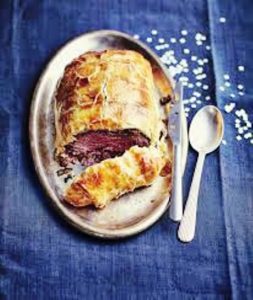Les divers ingrédients utilisés pour réussir la recette sont : rosbif d’environ (rumsteck), rouleau de pâte feuilletée, champignons de Paris, échalotes, beurre, jaune d’œuf, sel, poivre…