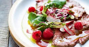 Servi avec une sauce aux framboises et des graines germées, le rosbif prend des saveurs sucrées-salées et acidulées dans cette recette légère et gourmande ! Découvrez comment réaliser ce plat estival original…