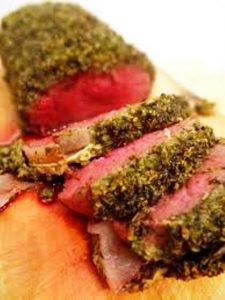 Les divers ingrédients utilisés pour réussir la recette sont : filet de rumsteck, gousses d’ail finement hachées, brins de romarin, feuilles de sauge, branche de thym frais, brins de persil plat…