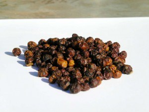 Après séchage, les baies prennent une teinte noire et deviennent rugueuses sous le doigt, comme striées. Son emploi est fréquent dans les poudres de curry.