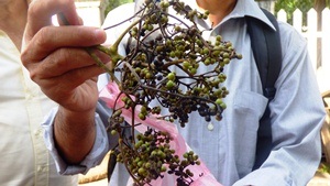 Les fruits sont des baies sphériques de petite taille (10 à 15 millimètres de diamètre) contenant deux graines, de couleur noire à maturité.